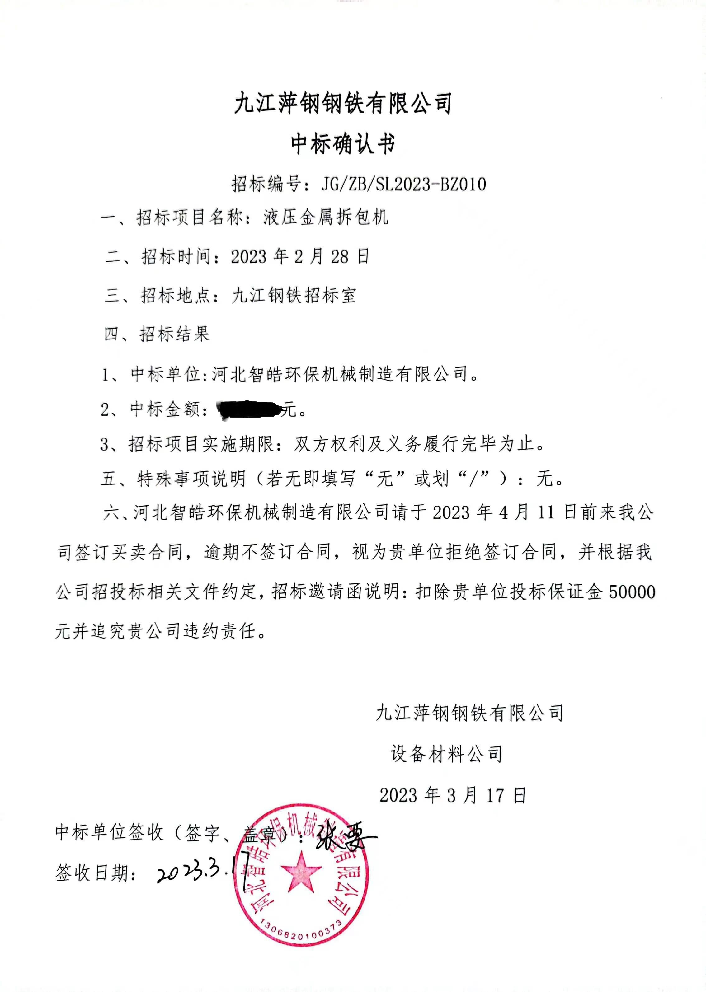 查看详情>热烈庆祝神隆宝鼎新材料有限公司金属液压打包机项目中标【查看详情】